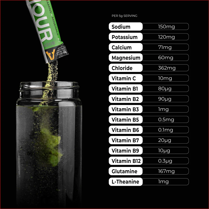 More Than Electrolytes: A comprehensive blend of electrolytes combined with B-vitamins, vitamin C, L-Theanine, and Glutamine for full performance support.