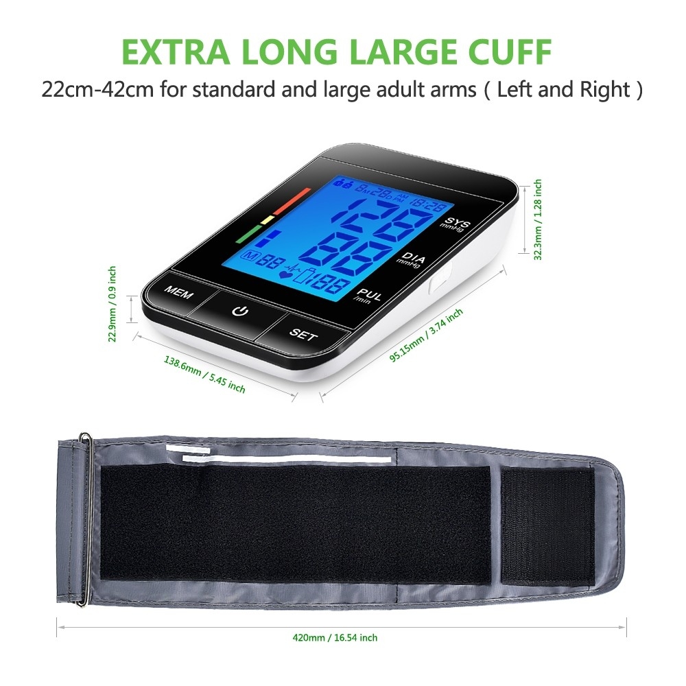 2×90 sets memory function, each measurement result will be displayed on the screen, and automatically stored. This unit has a blood classification index, which could easily check your blood pressure.