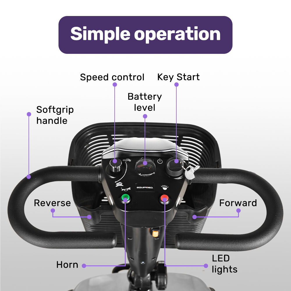Regain independence with the Equipmed FreeLite+ Electric Mobility Scooter, designed for smooth, reliable travel. With a top speed of 8km/h and a 30km range, its perfect for everyday errands, social outings, and outdoor adventures.
