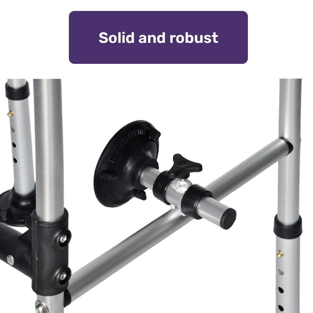 To cater to diverse needs and preferences, the legs of the frame are adjustable. You can effortlessly customise the height to achieve the perfect fit for you, enhancing your sense of stability and balance. The frame is equipped with innovative spacer clamps, designed to hold it steadily and securely centred over the toilet. The large rubber foot pads on the legs ensure it stays securely in place without any unwanted slipping or movement.