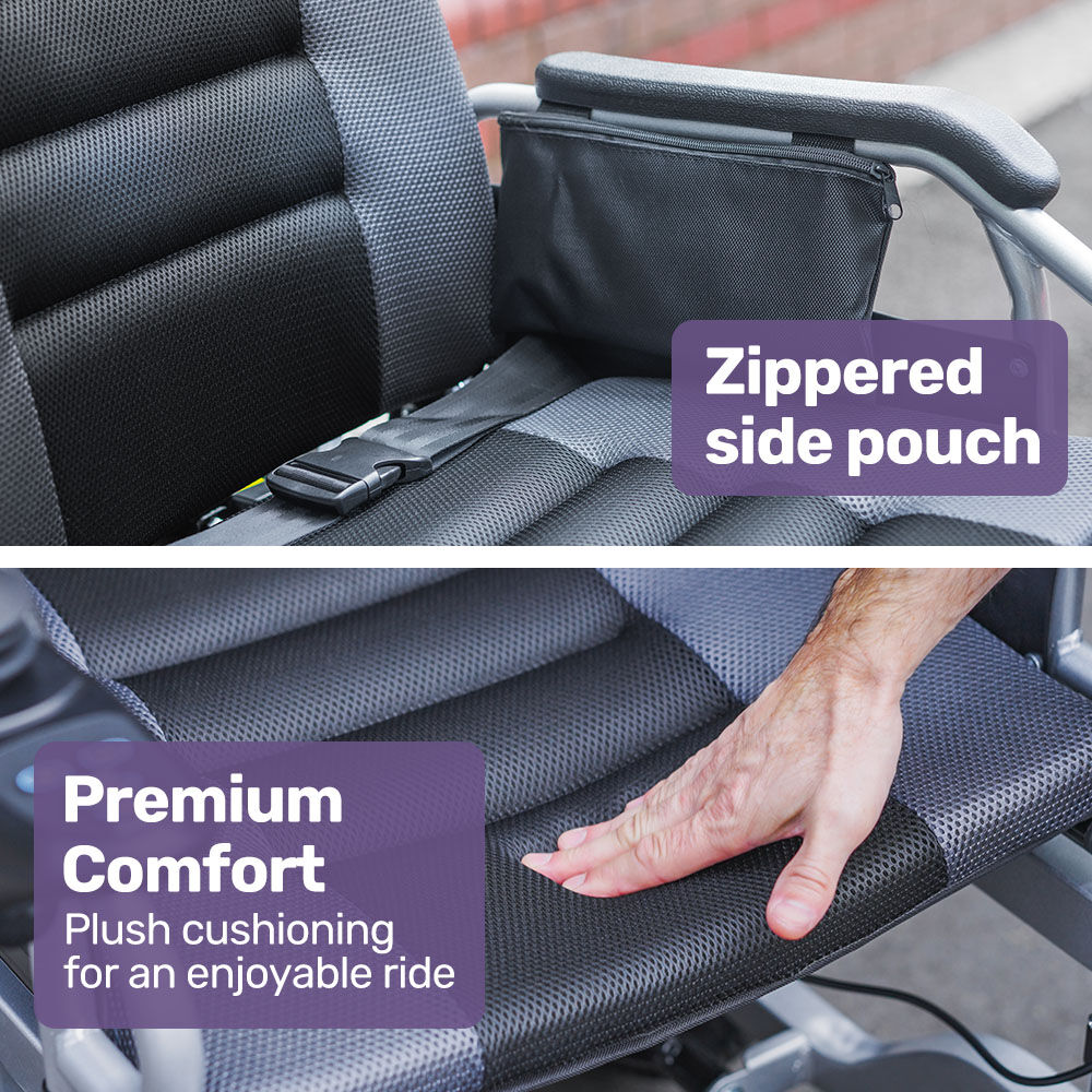 Control is intuitive with a responsive joystick that can be mounted on either the left or right side. The LED display is clear and easy to read, and you can travel at a steady pace of up to 6km/h equivalent to a brisk walking speed.