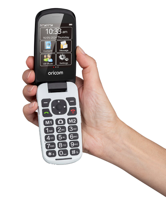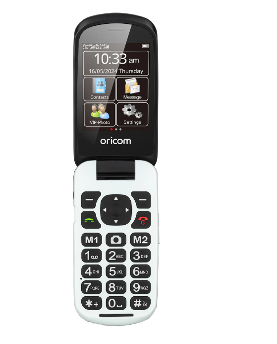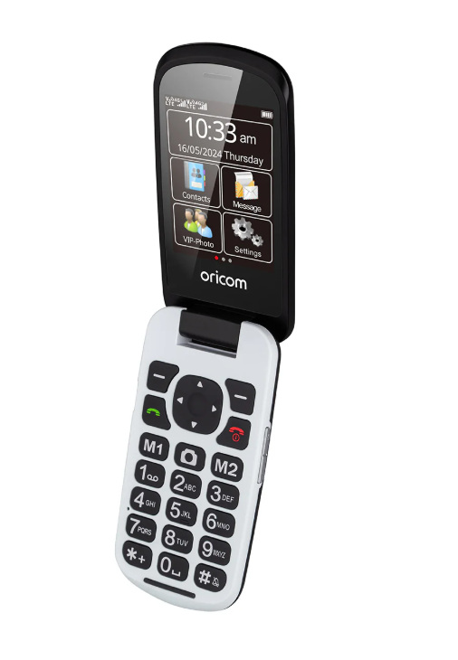 Introducing the Oricom EZY7510, the ultimate flip mobile phone designed with the needs of elderly users in mind. This 4G-compatible device features a high-contrast keypad for easy navigation and a talking keypad that announces each key press, ensuring effortless use.