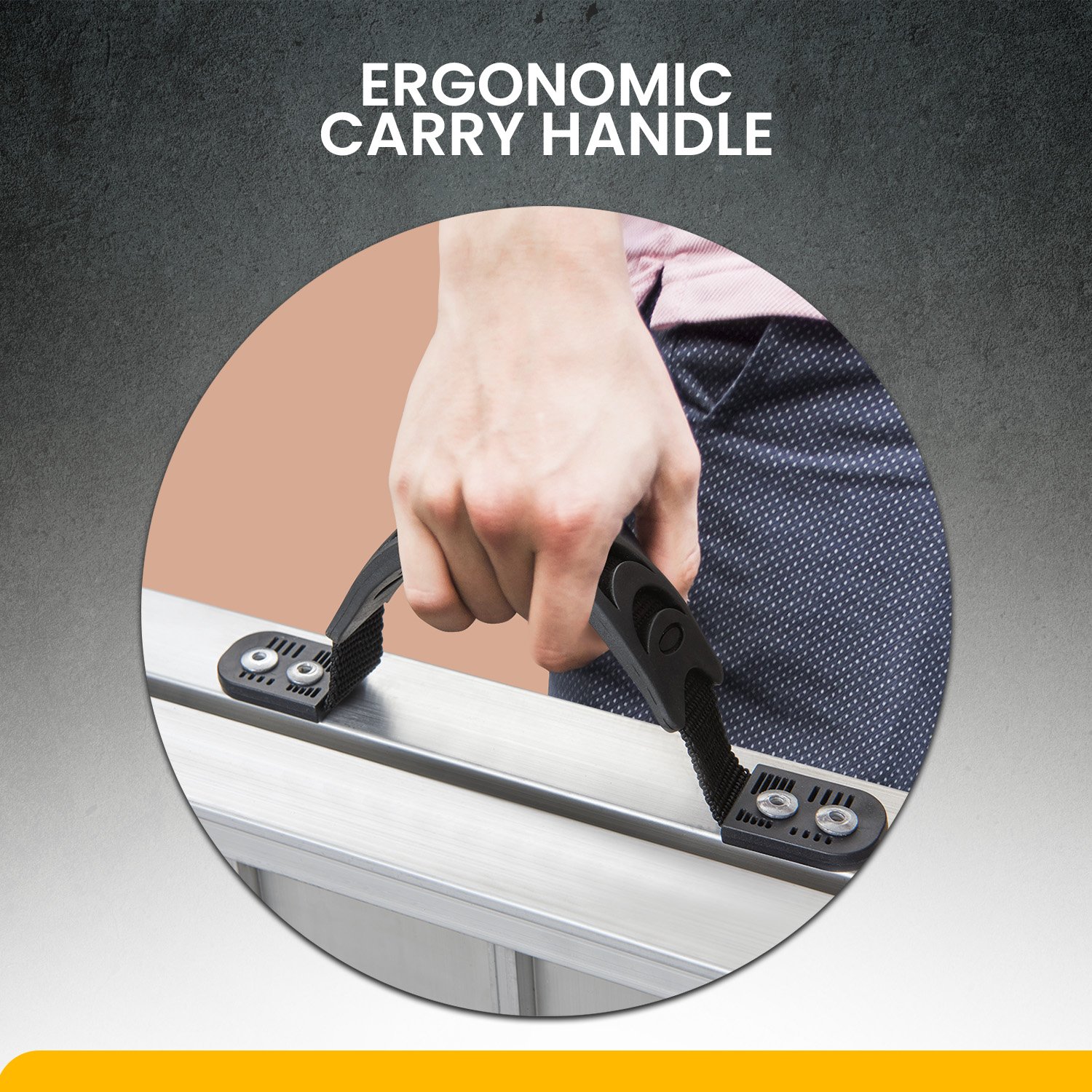 This foldable aluminium wheelchair ramp is the ideal solution for climbing steps and kerbs or for getting into your vehicle. It is designed for portability, with a carry handle, locking pin and smart folding design.