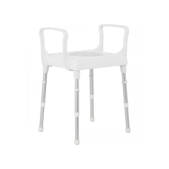 Smooth polypropylene surface is easy to clean and the optional back and arm rests are simple to attach. Legs can be quickly detached for effective cleaning and ease of transport, and they have a built in locking system for extra safety. Setting the seat with a slight forward tilt can assist rising and relieve hip joints. Lightweight for ease of movement.