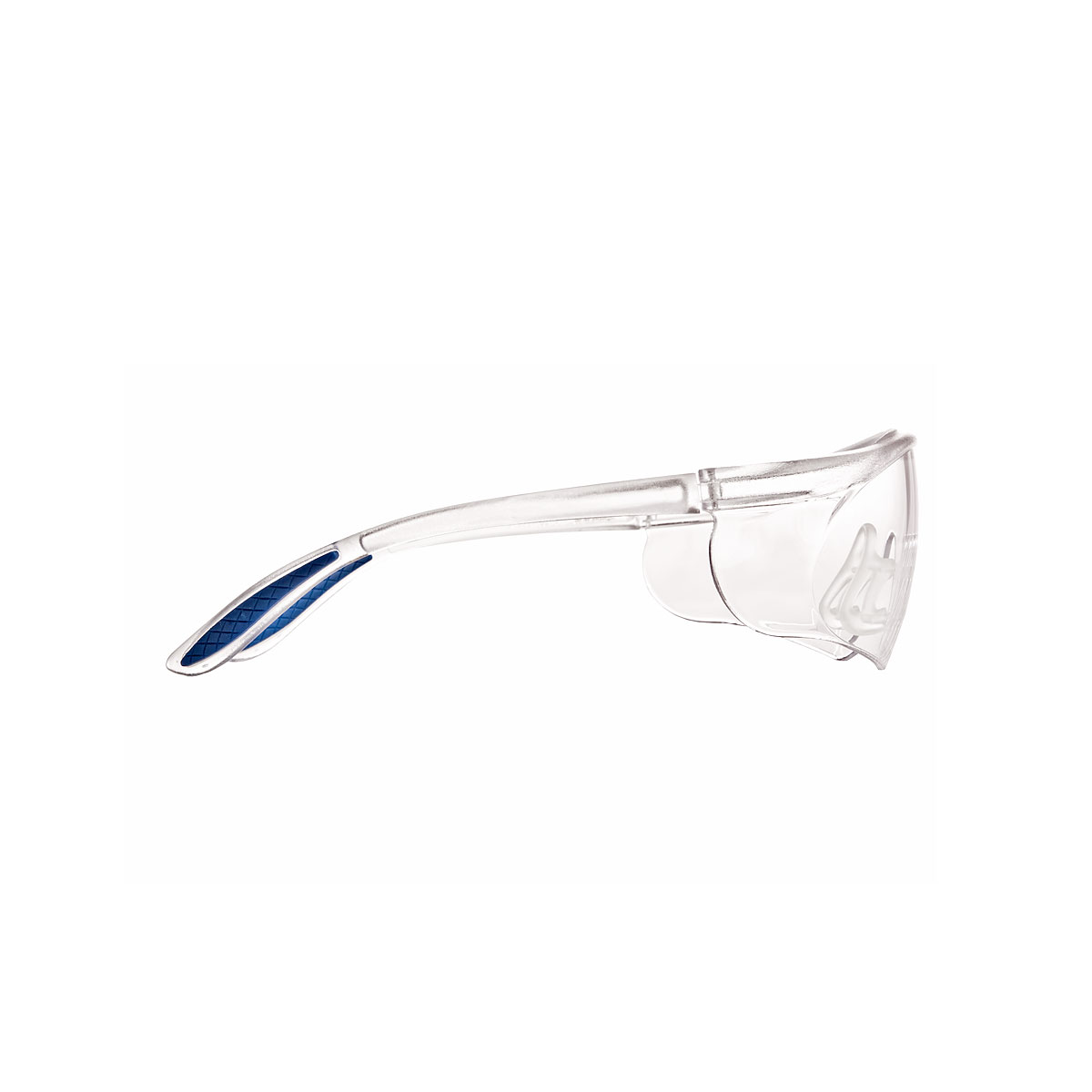 A soft nose bridge is built in, and no-slip temple insert ensure a secure, face-hugging fit. The nose bridge and temple inserts are made from soft, non-allergenic materials. These safety glasses also provide UV protection and reduce glare from sun or harsh lighting.