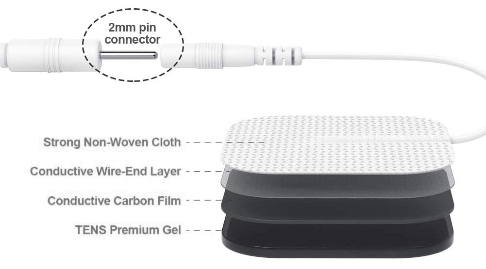UNIVERSAL COMPATIBILITY. The TENS Electrode Pads has a standard 2.0mm female connector that is compatible with most TENS units, EMS massagers and muscle stimulators. Purchase and use is hassle free.