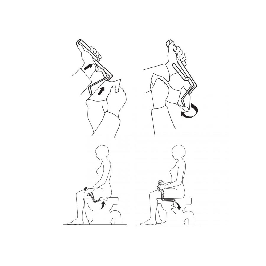 The Toilet Paper Aid is a tool used in the toilet and bathroom. During toileting the tongs help to extend the reach of the user, when wiping and cleaning the bottom. Minimal movement is needed to achieve independent results. The Toilet Paper Aid can also be used for hygiene and self care. The product aids in washing and drying the exterior; whilst minimizing the need for bending. Risk of falls is also minimized. Independence can be achieved whilst toileting or showering. Used in care facilities or at home the Toilet Paper Aid promotes safety, independence and hygiene. The tongs can be boiled or sterilized for hygiene purposes as required. A great tool providing important independence to users.